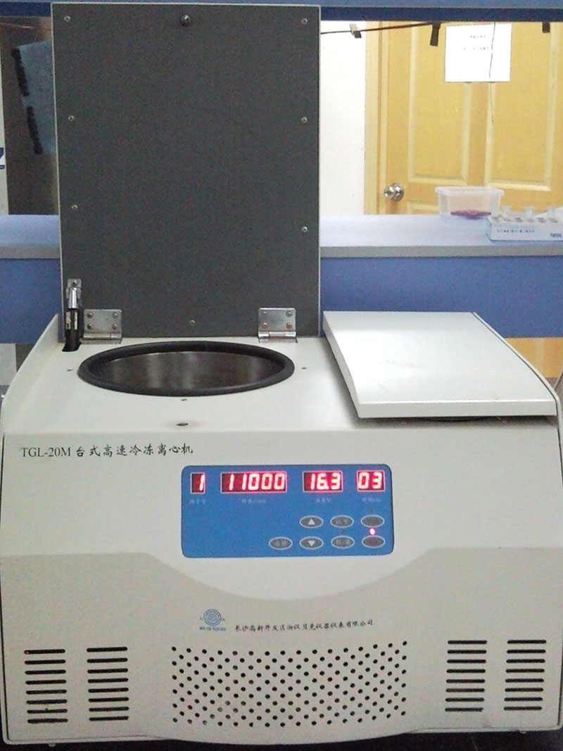 高速冷凍離心機(jī)型號為TGL-20M,最高轉(zhuǎn)速20000/min,最大離心力27810Xg,轉(zhuǎn)子數(shù)12個。